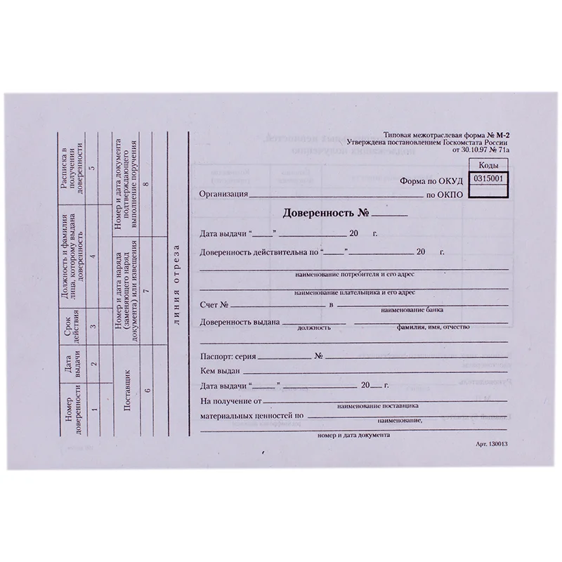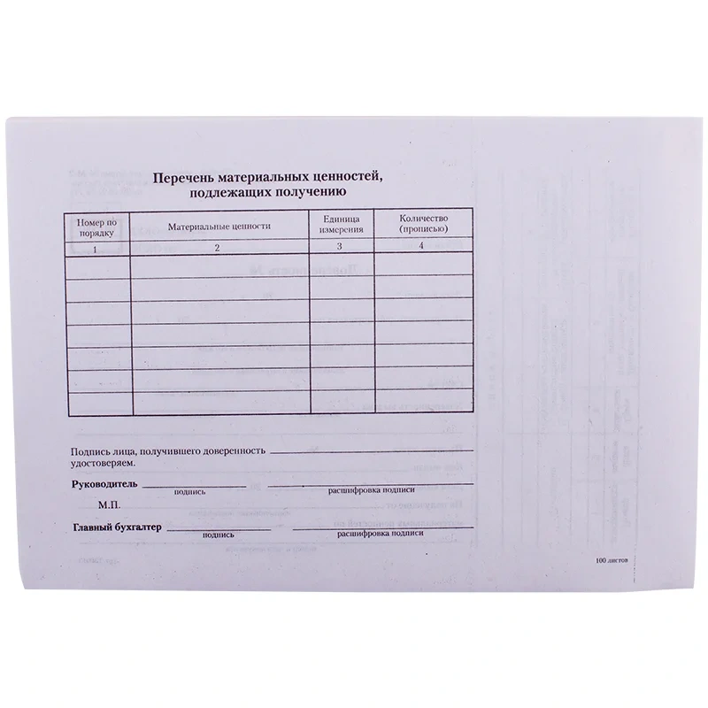 Бланк 'Доверенность'. Двусторонний. Бланки изготовлены из газетной бумаги и склеены в книгу по 100 листов. Упаковка в термоусадочную пленку.