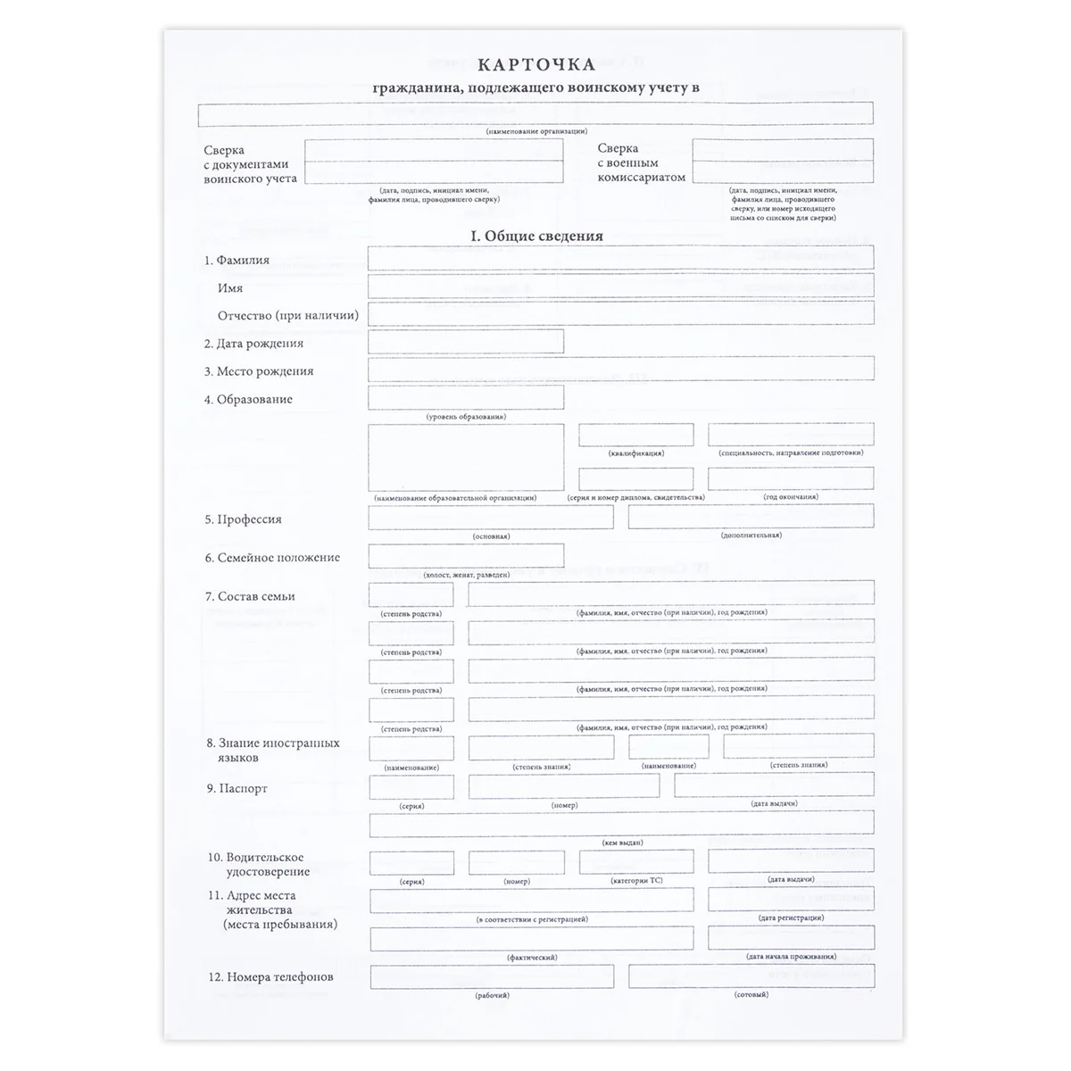 Бланк Карточка гражданина подлежащего воинскому учету (форма № 10), А4, офсет, 100 экз., в пленке т/