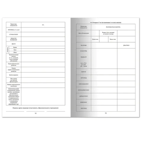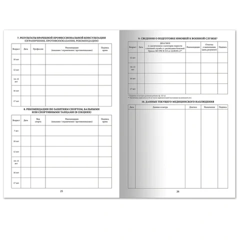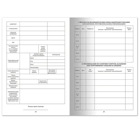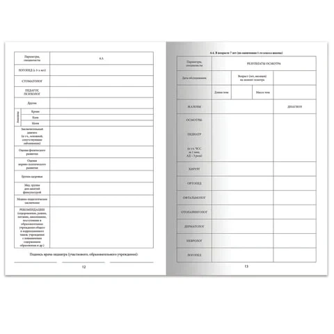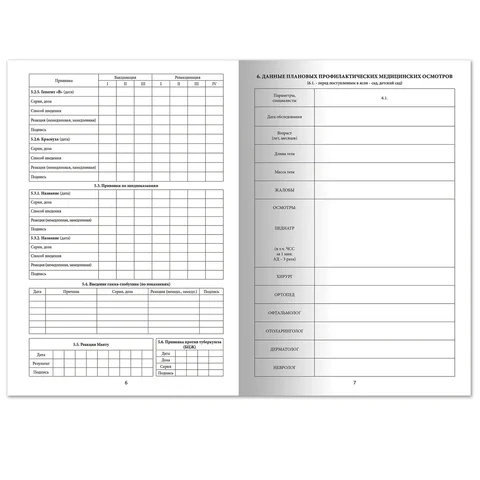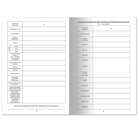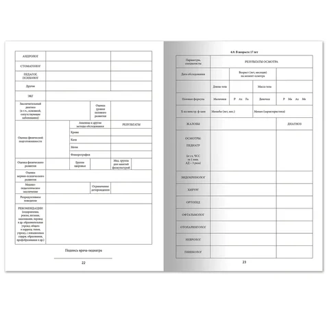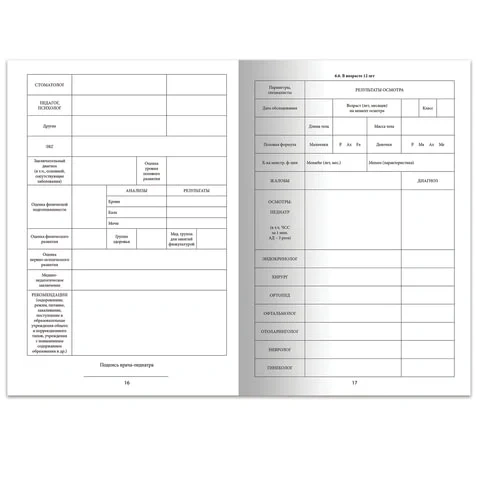 Бланк формата А4 (198х278 мм) содержит 16 листов офсетной бумаги. Мягкая обложка из мелованного картона и скрепление с помощью скрепок делают изделие износоустойчивым и удобным для хранения. Вертикальная ориентация. Соответствует государственным стандартам документального ведения учета. Утвержден Министерством здравоохранения.