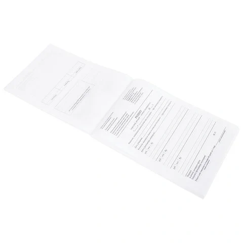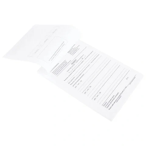 Изготовлен из офсетной бумаги плотностью 65 г/м2. Внутренний блок проклеен по одному краю. Формат А5 (135х195 мм). Поставляется в виде книжки в количестве 100 штук в термоусадочной пленке.