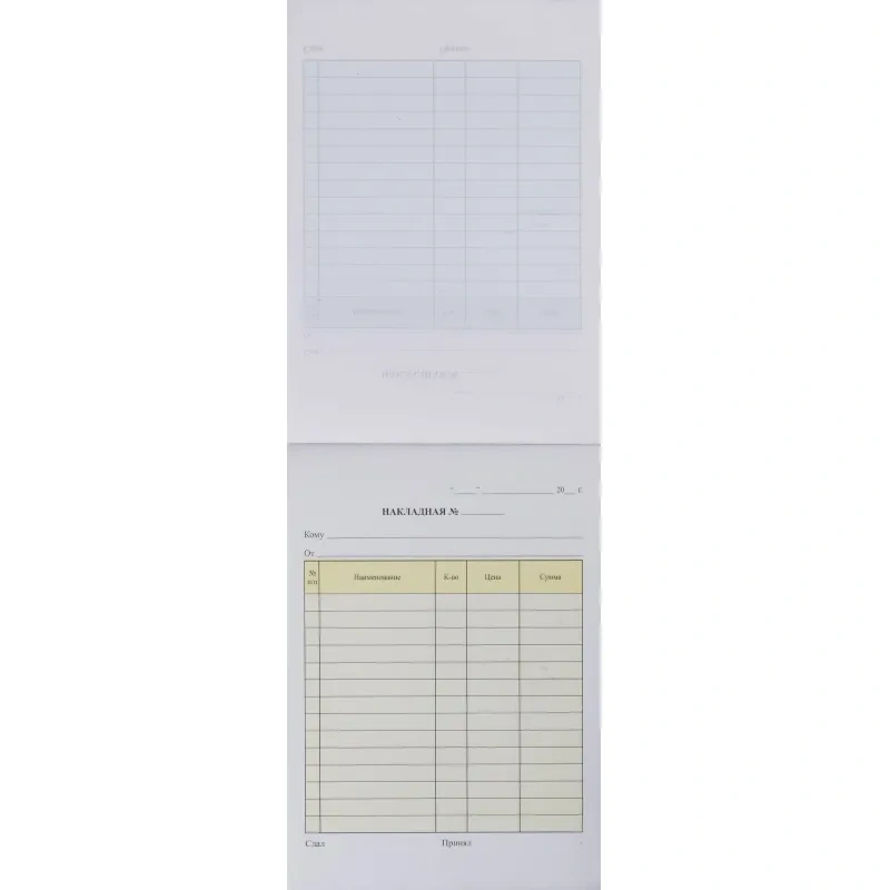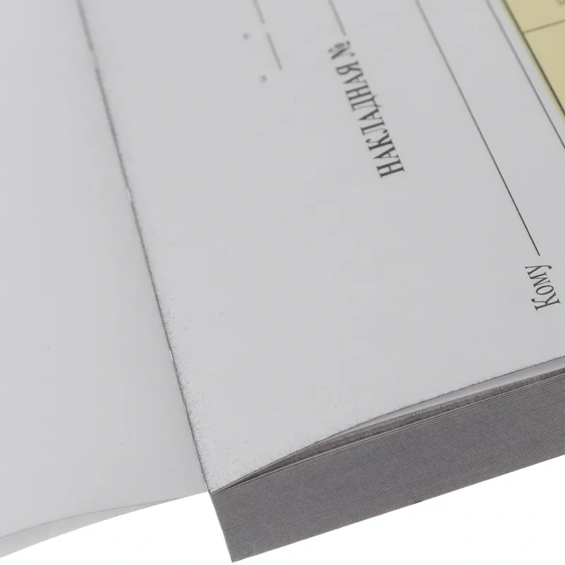 Самокопирующие бланки ’Накладная’ изготовлены из офсетной бумаги формата А5. Изделие представляет собой склеенные по одному краю листы, легко отделяющиеся друг от друга. Каждый бланк состоит из трех листов, различных по цвету. Благодаря копирующему слою, нанесенному на бумагу, при заполнении можно получить сразу несколько копий документа. Упаковка самокопирующихся бланков ’Накладная’ содержит 50 экземпляров. По бланкам рекомендуется писать шариковыми ручками с обычными чернилами — не с масляными и не с гелевыми, с усилением, на ровной твердой поверхности.