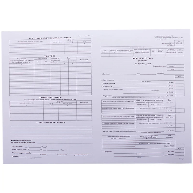 Бланк 'Карточка личная' (форма Т-2) 50 экз., в пленке т/у.