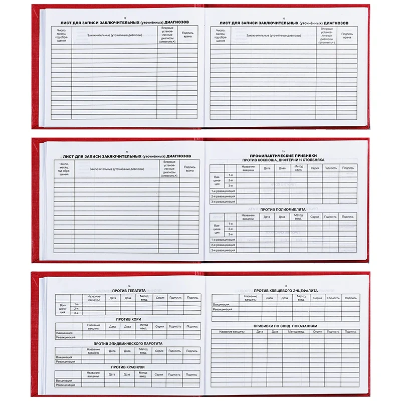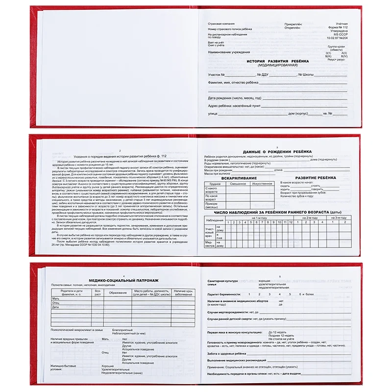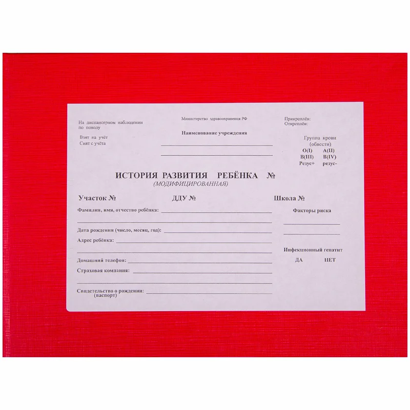 Бланк Officespace Медицинская карта история развития ребенка А5, 196 листов, красный