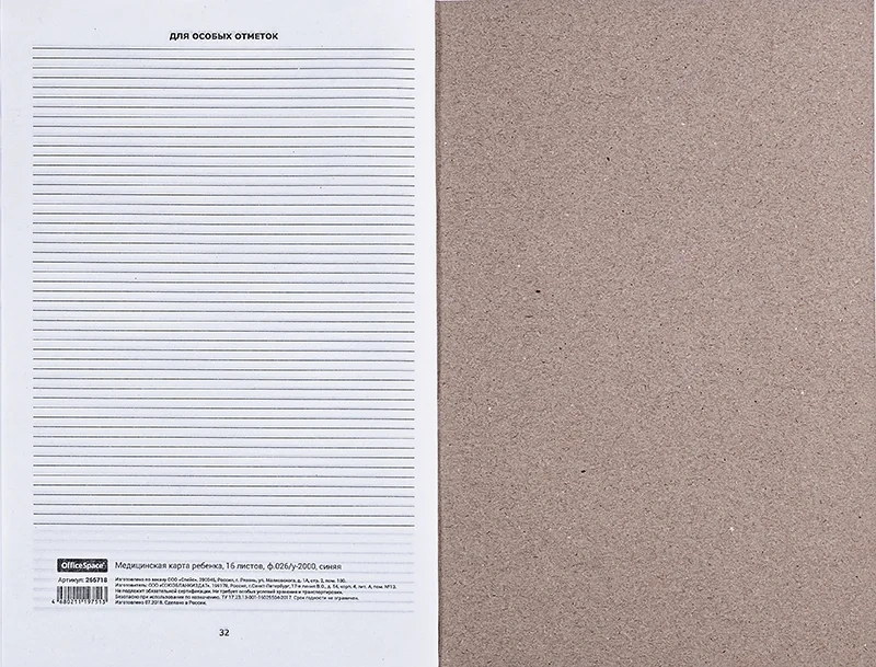 Бланк Officespace Медицинская карта ребенка А4, 16 листов, синий