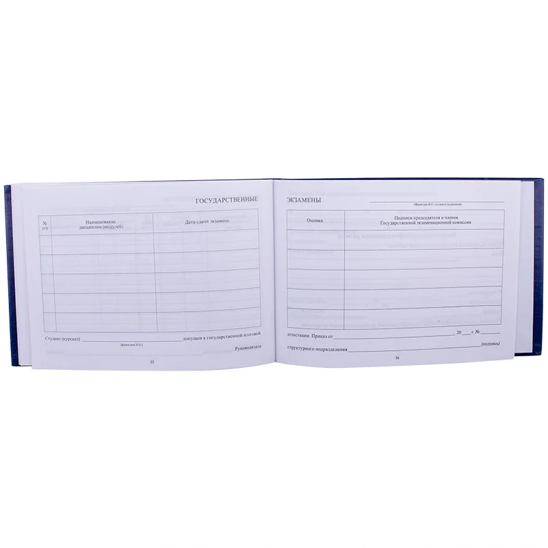 Образец бланка «Зачетная книжка» для студентов, осваивающих программы бакалавриата, программы специалитета, программы магистратуры (утв. приказом Министерства образования и науки РФ от 22 марта 2013 г. N 203). Размер бланка 140*100 мм. Плотность внутреннего блока: 65 г/м2.