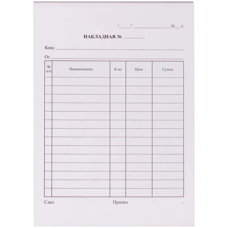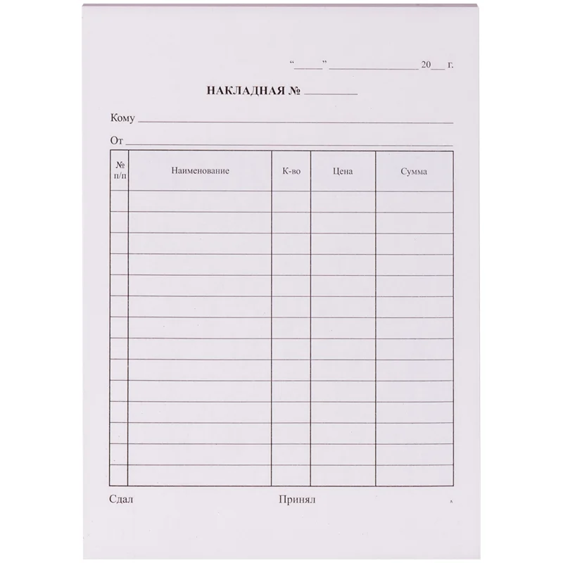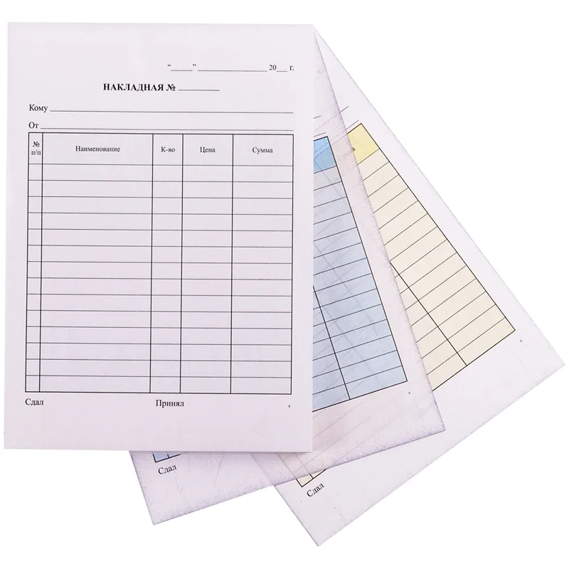 Бланк трехслойный самокопирующийся 'Накладная'. Самокопирующийся бланк изготовлен из самокопирующейся бумаги. На верхний лист текст наносится обыкновенной ручкой, карандашом или матричным принтером. Оттиск черного цвета появляется одномоментно на двух низлежащих листах. Бланки изготовлены из офсетной бумаги. В склейке 50 экземпляров. Упаковка в термоусадочную пленку.