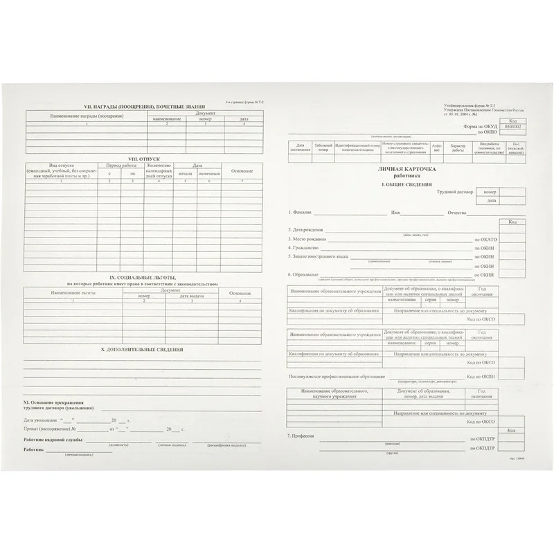 Бланк личная карточка T-2 А3, 300х450 мм, 50 шт, пустографка