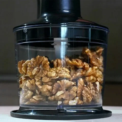 Насадка-блендер для измельчения и смешивания предназначена для приготовления смузи, фруктового пюре и крем-супов, для измельчения орехов, мяса, лука, твердых сыров, вареных яиц, чеснока, зелени, сухого хлеба. При использовании измельчителя удерживайте кнопку включения не более 3-5 секунд с перерывами на 1-2 секунды.