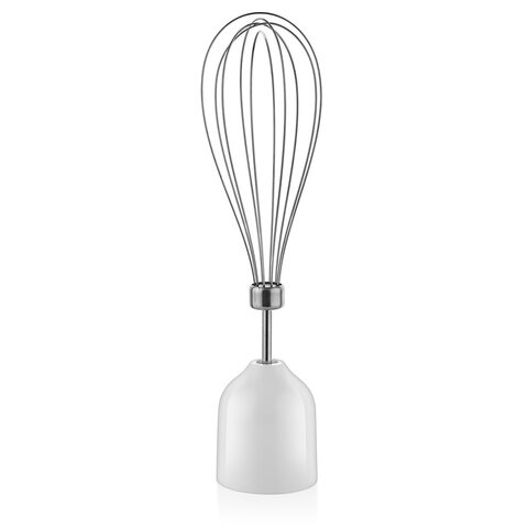 Устройство помогает измельчать фрукты, овощи, ягоды, орехи, мясо и рыбу для приготовления различных блюд. С помощью венчика удобно взбивать яичные белки и сливки, смешивать ингредиенты жидкого теста. В наборе есть стакан объемом 700 мл, оснащенный мерной шкалой, в нем можно приготовить ягодный мусс, десерты и начинки для выпечки, супы-пюре, соусы.