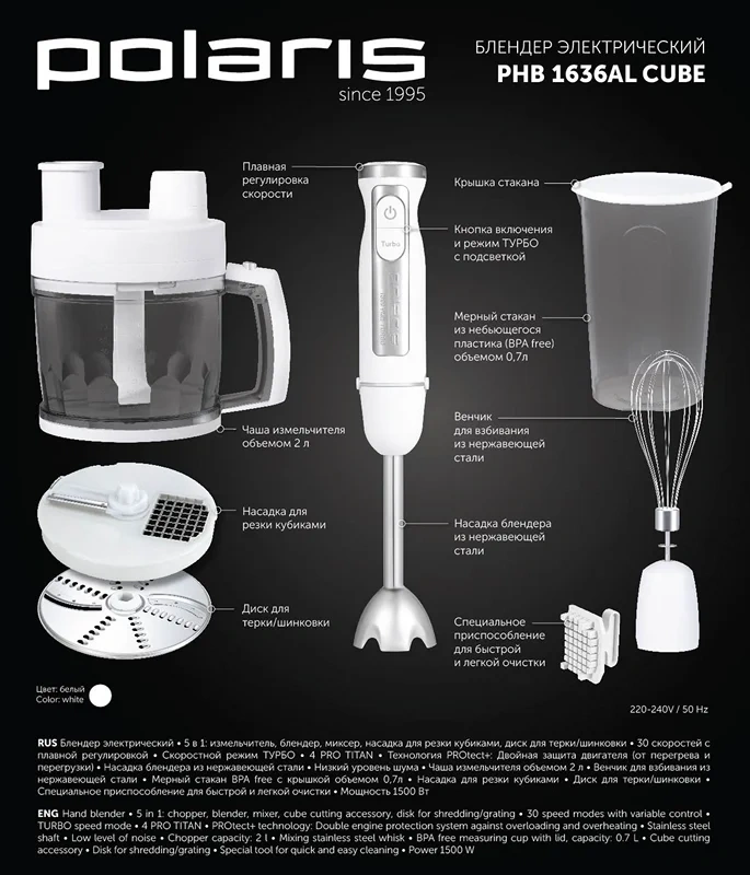 Блендер погружной Polaris Cube PHB 1636AL