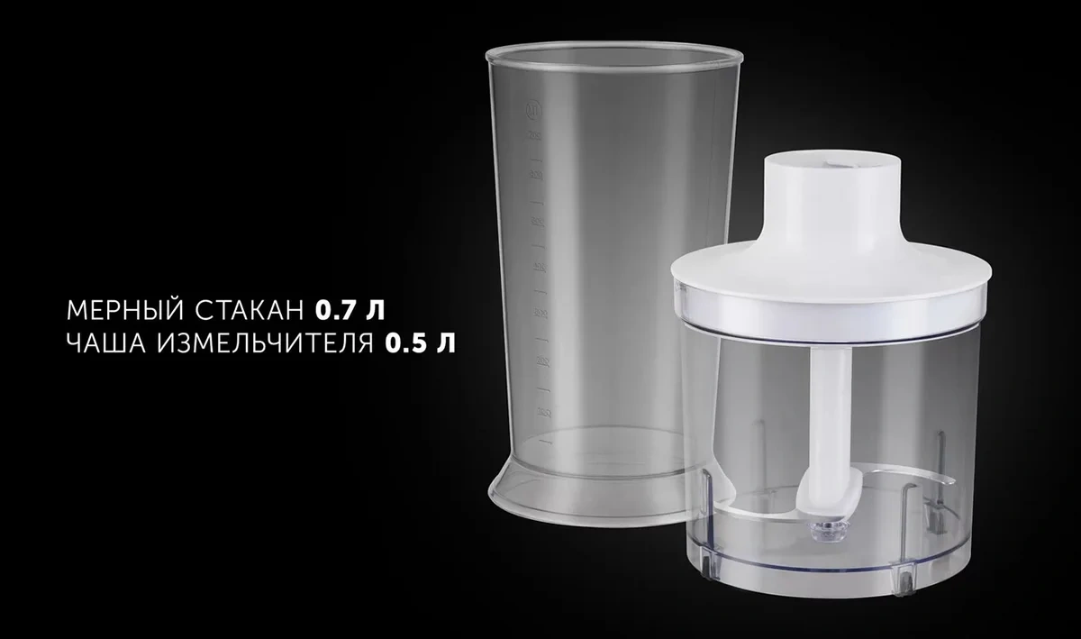 | Комплектация | блендер - 1 шт.; насадка-венчик - 1 шт.; мерный стакан - 1 шт.; измельчитель - 1 шт. |