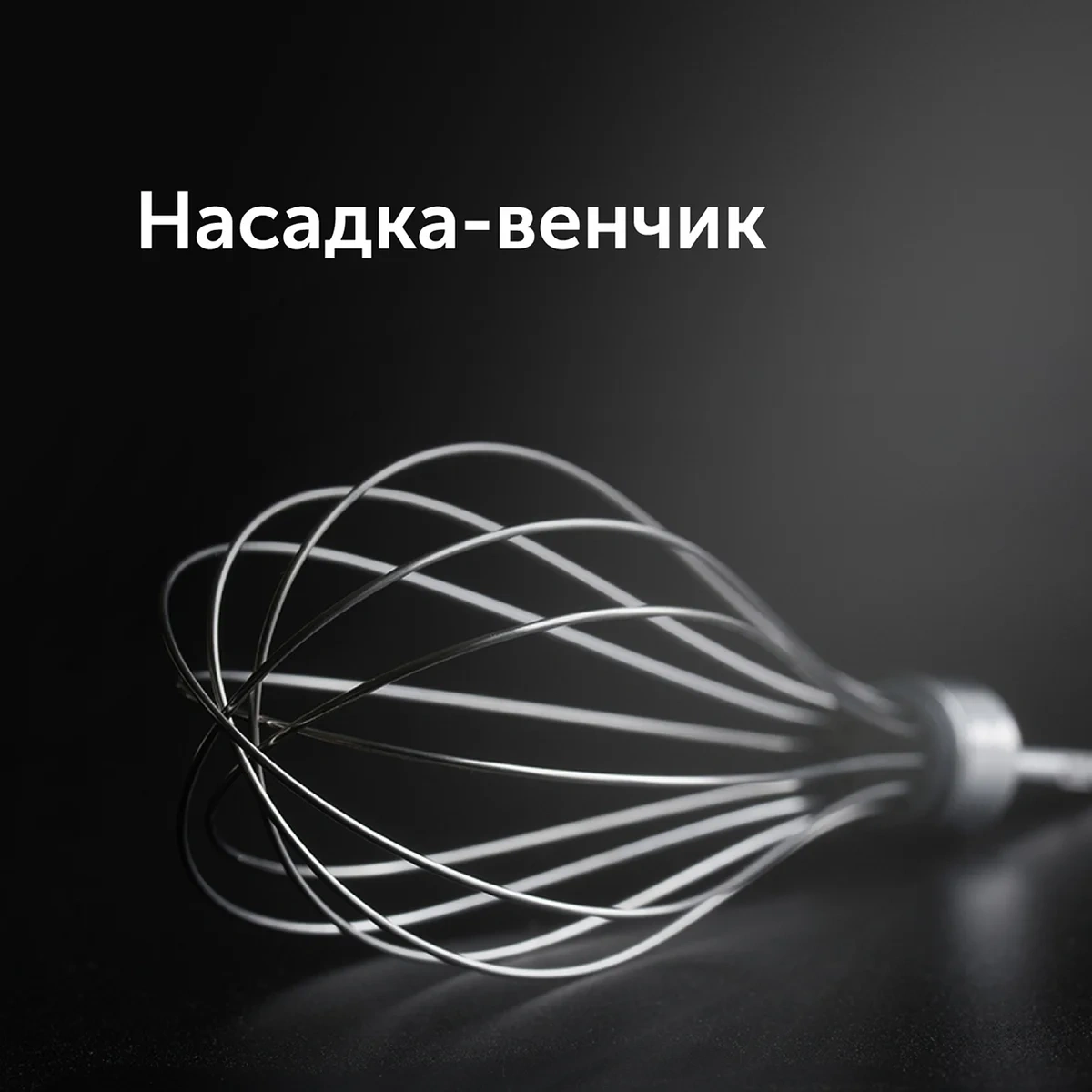 Ваш незаменимый помощник на кухне. Он легко справляется с приготовлением супов-пюре, детского питания, белков для безе, мусса, воздушного бисквитного теста, фарша, теста для блинов. В комплекте идут три насадки: блендер, венчик и измельчитель. Особый нож из нержавеющей стали с загнутой лопастью, плавная регулировка мощности и светодиодная индикация делают устройство надежным, ярким и эффективным инструментом для решения повседневных кулинарных задач, где важно тщательно взбивать, измельчать и смешивать. Максимальная мощность 1200Вт.