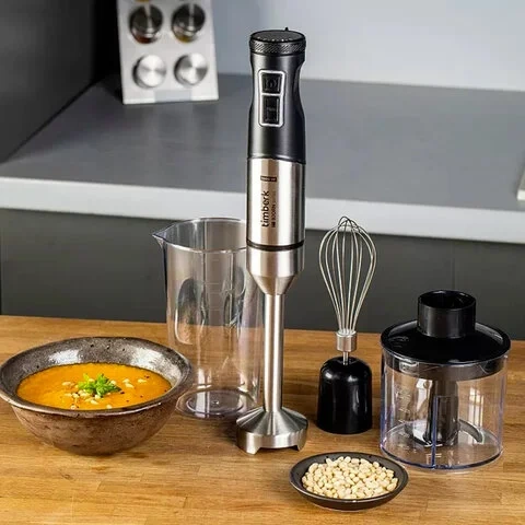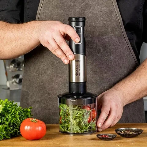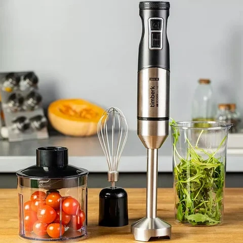 Блендер погружной TIMBERK T-HB42F01, 1500 Вт, 9 скоростей, 3 насадки, стакан, черный