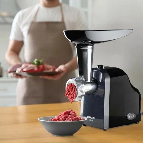Мясорубка SCARLETT SC-MG45M21, 1800 Вт, производительность 2 кг/мин, 3 насадки, реверс, пластик, чер