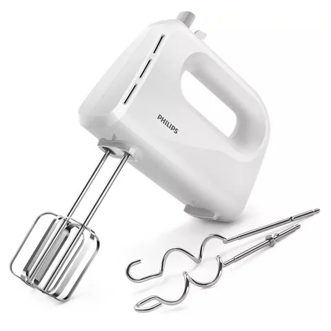 Миксер PHILIPS HR3705/00, 300 Вт, 5 скоростей, 2 венчика, 2 крюка для теста, белый