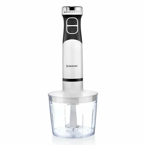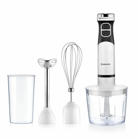 Блендер погружной BRAYER BR1242, 800 Вт, 2 скорости, 3 насадки, стакан, белый