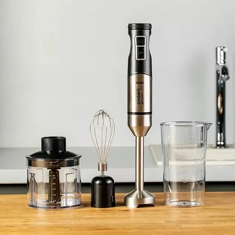 Блендер погружной TIMBERK T-HB42F01, 1500 Вт, 9 скоростей, 3 насадки, стакан, черный