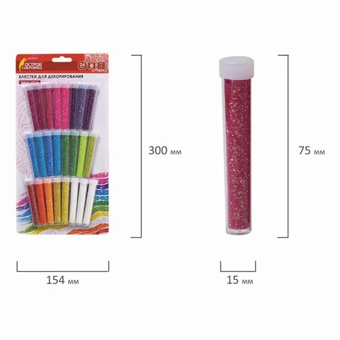 Блестки для декора (глиттер) ОСТРОВ СОКРОВИЩ, НАБОР 24 цвета по 4 грамма, блистер, 662230