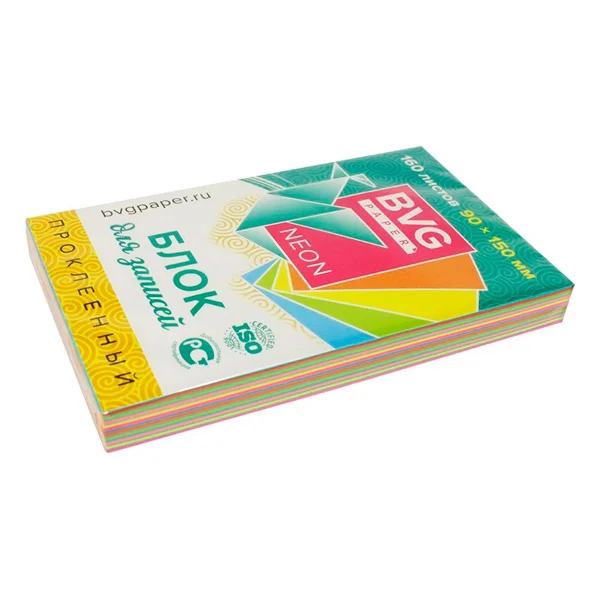 Блок для записей непроклеенный Bvg цветной неон, премиум, 15х9см, 160 листов