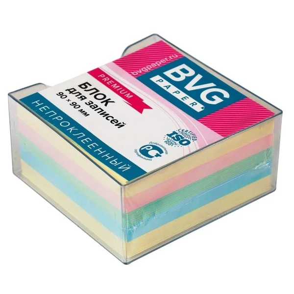 Блок д/заметок BVG 9x9x4,5 см, премиум, ЦВЕТНОЙ