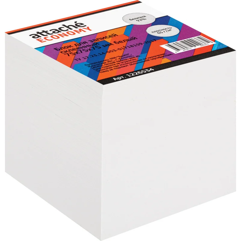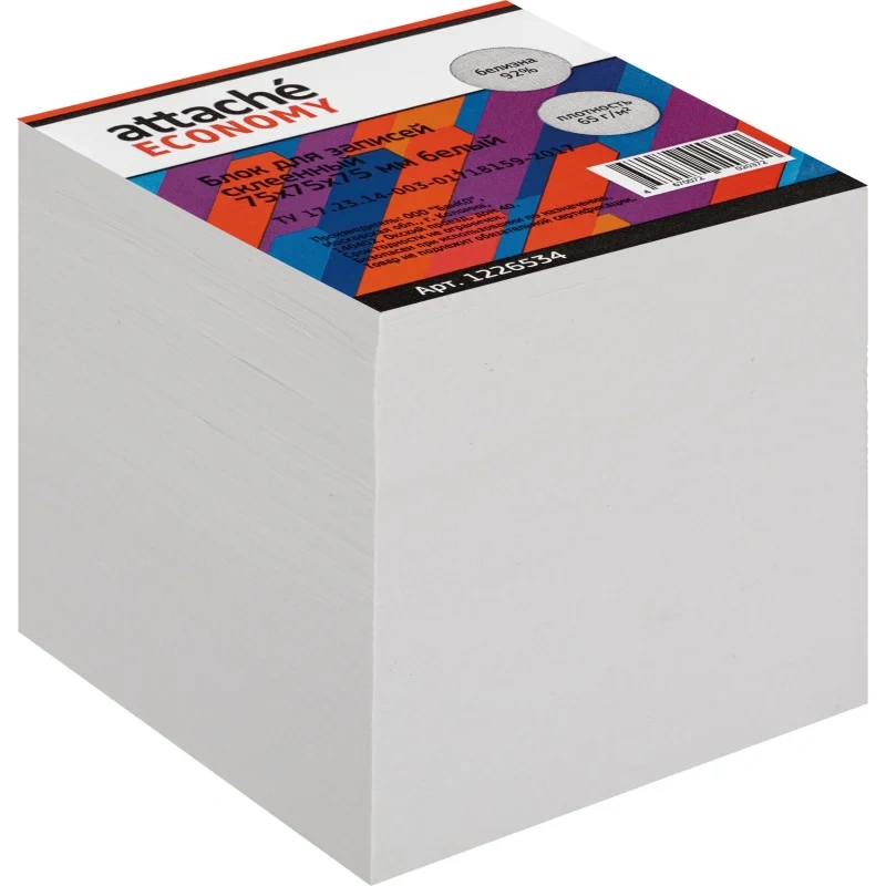 Блок для записей Attache Economy проклеенный 7,5х7,5х7,5, белый, 65 г, 92