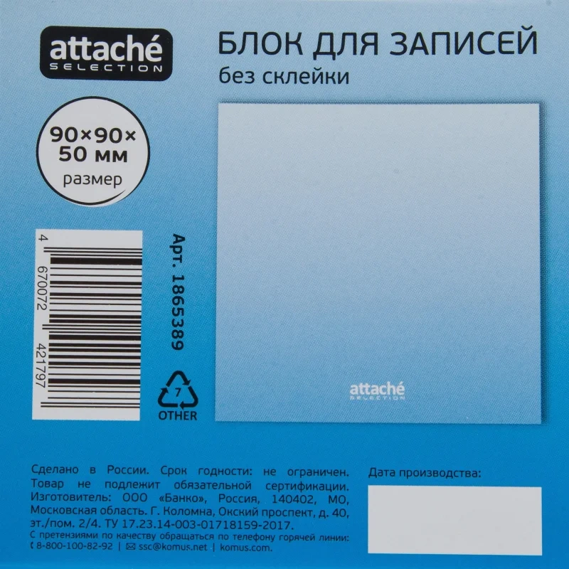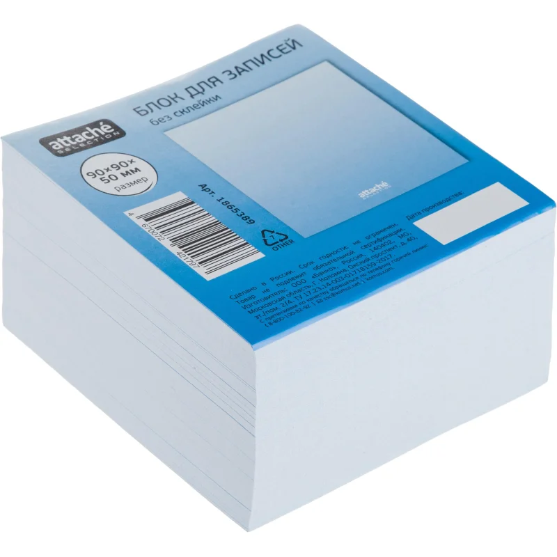 Блок для записей Attache Selection 90x90x50 Градиент, голубой 100г Блок бумаги для заметок 'Градиент' удобен для оперативной записи информации в офисе или дома. Применение таких блоков очень распространено: для заметок, для заголовков и записи важных дел или планов, замечаний и исправлений. Размер блока: 909050 мм. Индивидуальная упаковка в термоусадочную пленку.Законодательные и технические документы: