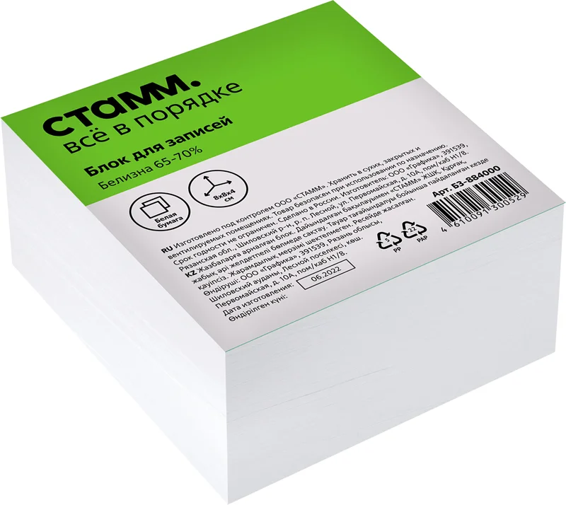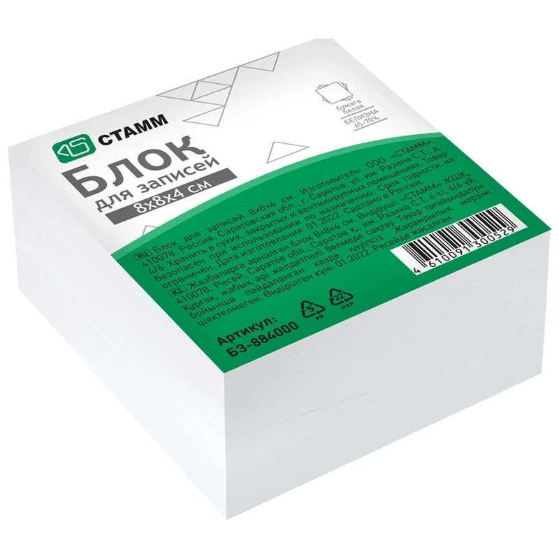 бумага для записей в блоках 90х90х90