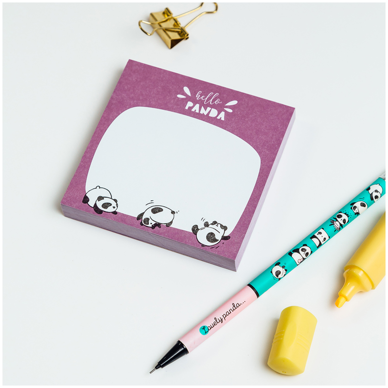 Блок для записей MESHU 8,5*8,5 см, 100л., 'Panda team', на склейке