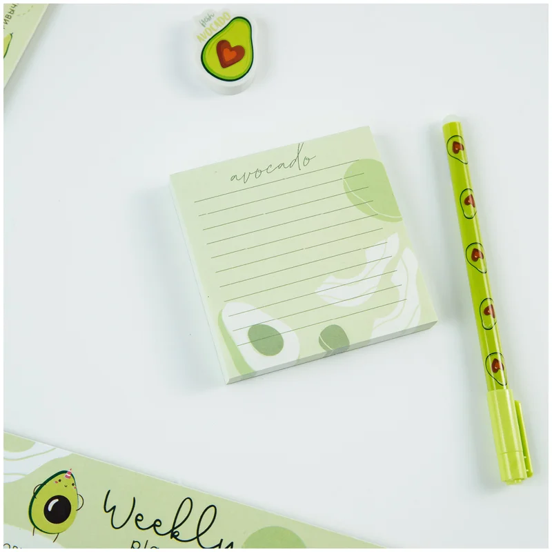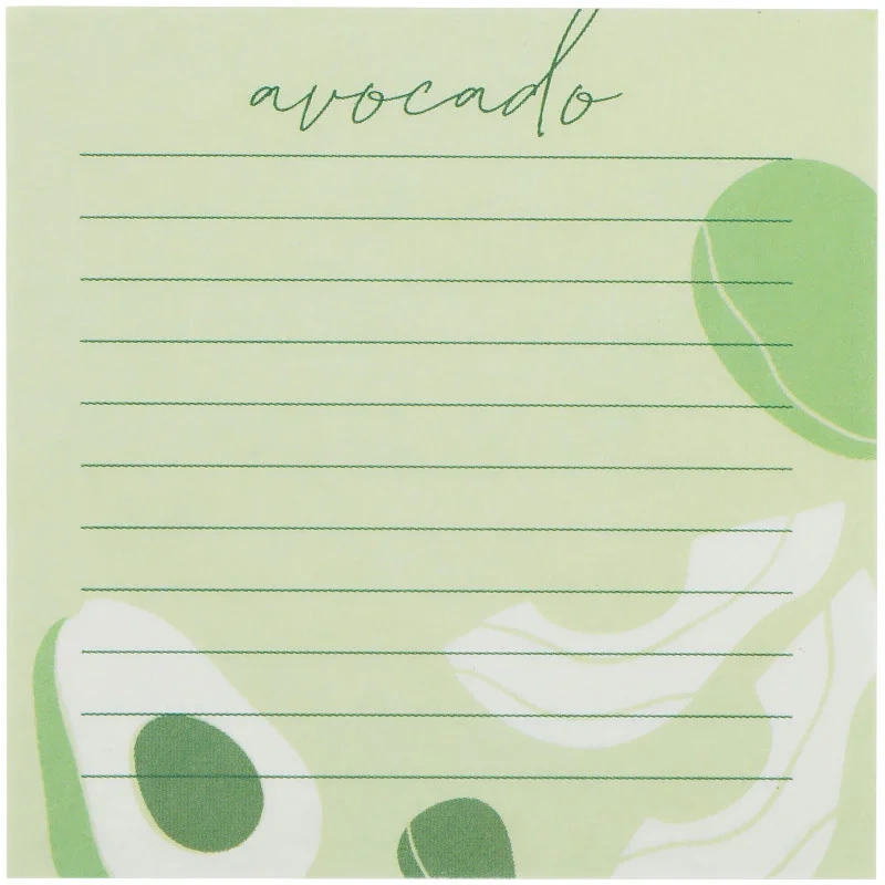 Декоративный блок бумаги для записей на склейке MESHU Avocado поможет фиксировать важную информацию и интересные идеи. Плотность офсетной бумаги составляет 80 г/м2. Размер листа в блоке для заметок – 85?85 мм, 100 листов в упаковке.