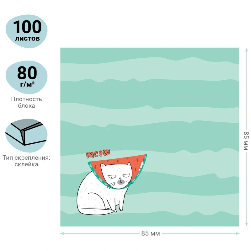Рабочий стол и личное пространство заиграют новыми красками благодаря оригинальному дизайну листов бумаги для заметок с забавным котёнком. Склейка поможет аккуратно отрывать листы, не повреждая их. Блок для записей представлен в индивидуальной упаковке в пакет с европодвесом.