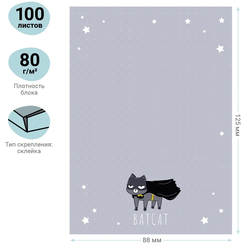 Блок для записей MESHU 8,8*12,5см, 100л.,'Batcat', на склейке