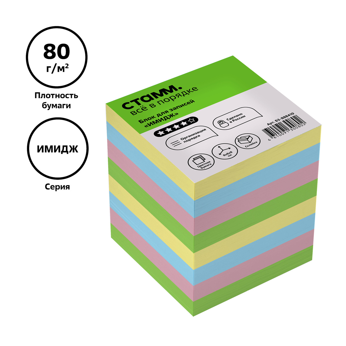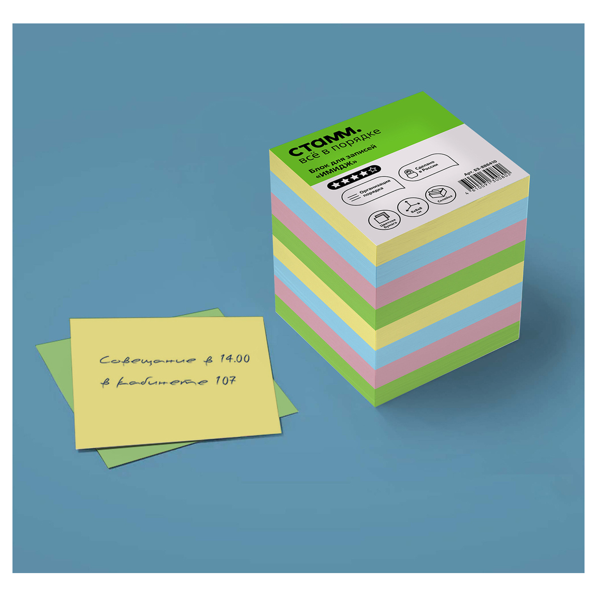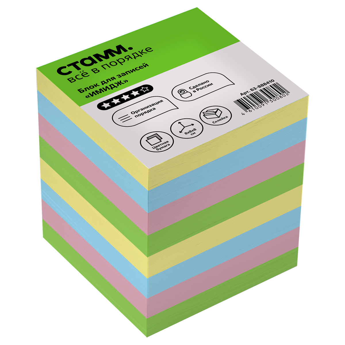 Блок для записей на склейке СТАММ 'Basic' 8*8*8см, цветной