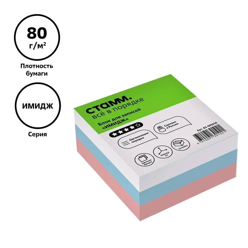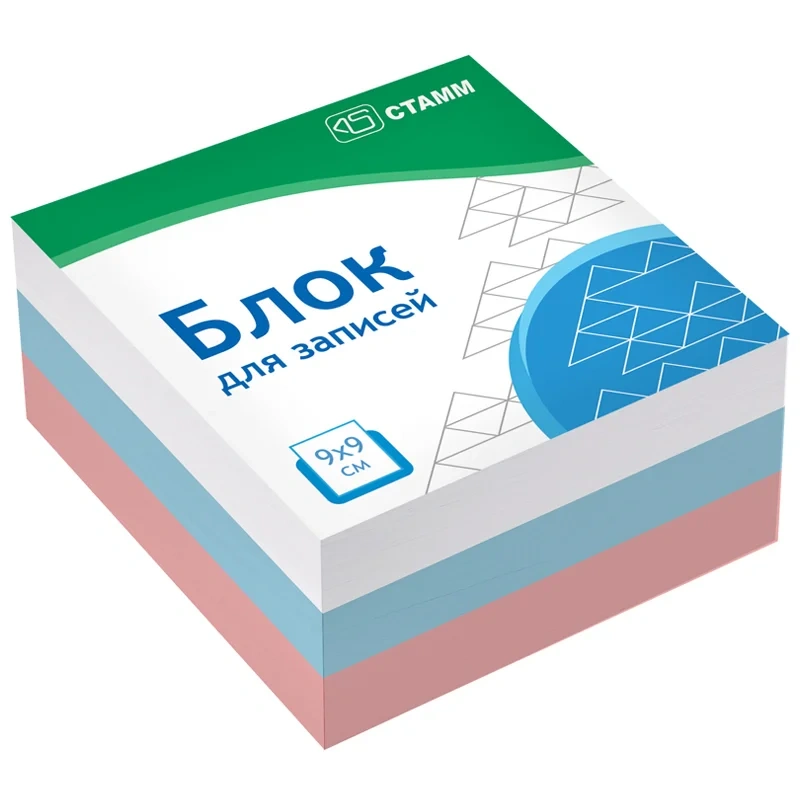 Блок для записей на склейке СТАММ 'Имидж', 9*9*4,5см, триколор