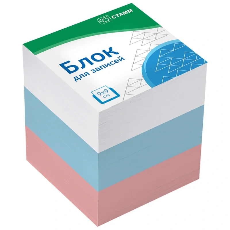 Блок для записей на склейке СТАММ 'Имидж', 9*9*9см, триколор