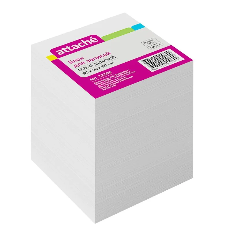 Блок для записей непроклеенный Attache белый, 90х90х90мм