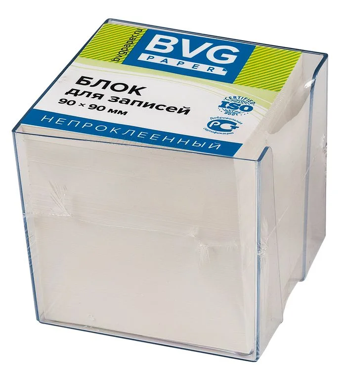 Блок для записей непроклеенный Bvg белый, 90х90х90мм, в прозрачном боксе
