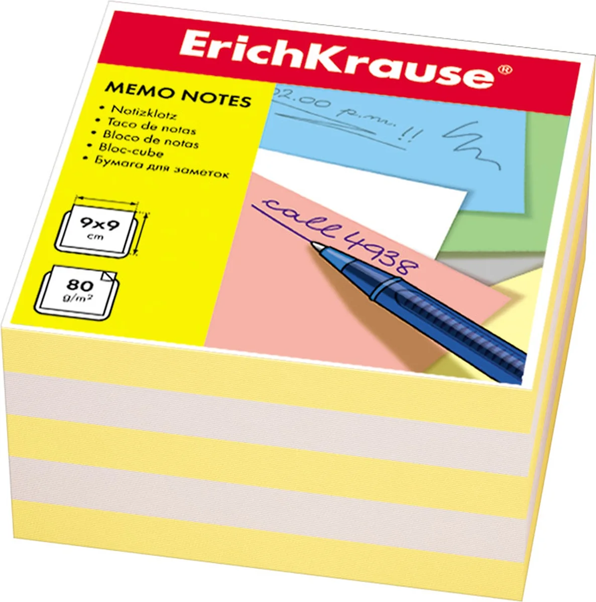 Блок для записей непроклеенный Erich Krause желтый с белым, 90х90х50мм, 2721
