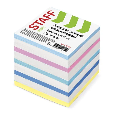Блок для записей непроклеенный Staff 5 цветов, 90х90мм