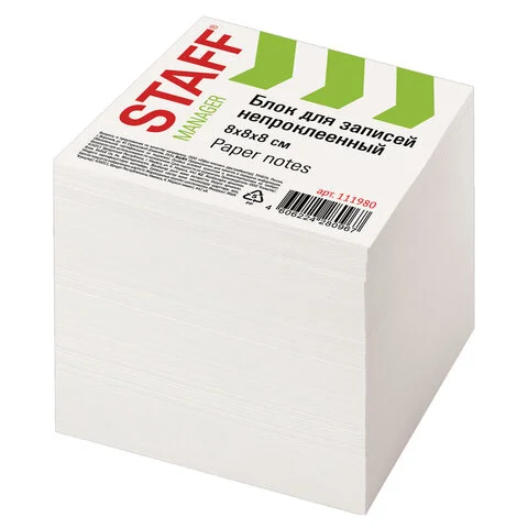 Блок для записей непроклеенный Staff белый, белизна 90-92%, 80х80х80мм