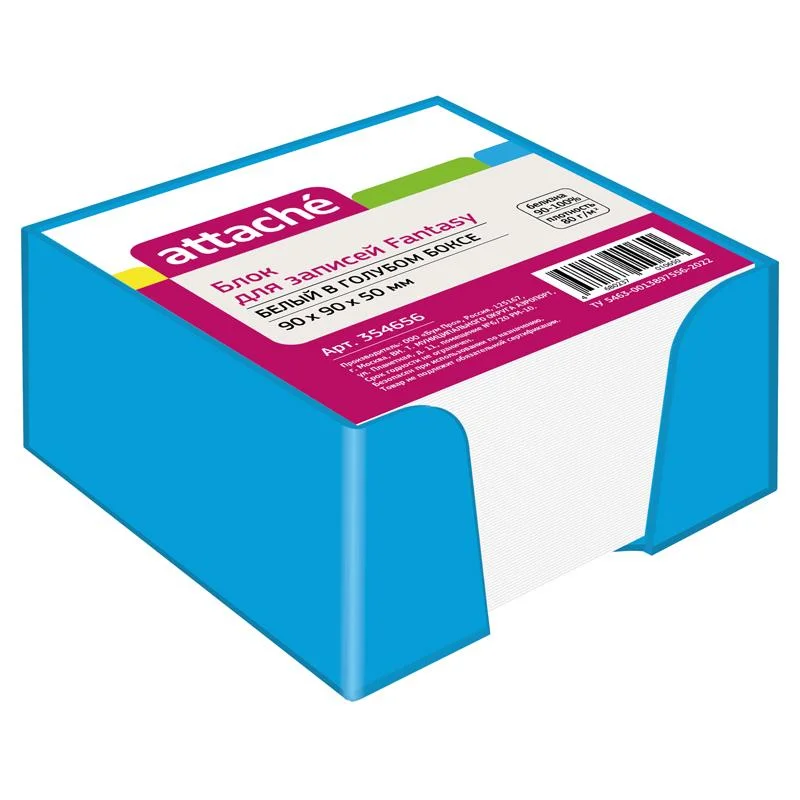 Блок для записей в подставке Attache Fantasy белый в голубом боксе, 90х90х50мм