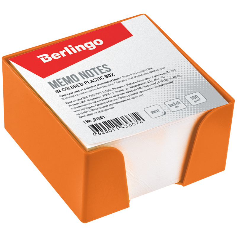 Блок для записей в подставке Berlingo белый в оранжевом боксе, 90х90х50мм