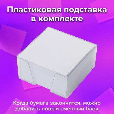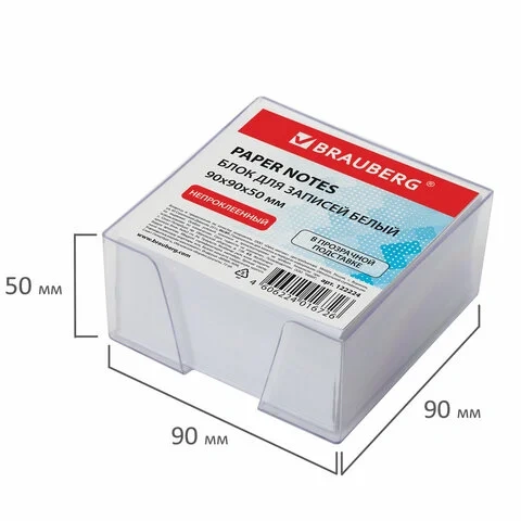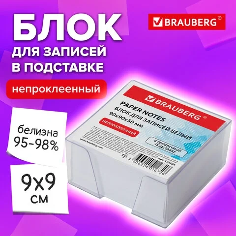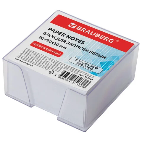 Блок для записей в подставке Brauberg белый в прозрачном боксе, 90х90х50мм