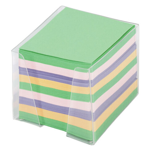 Блок для записей ОФИСМАГ в подставке прозрачной, куб 9х9х9 см, цветной, 127799