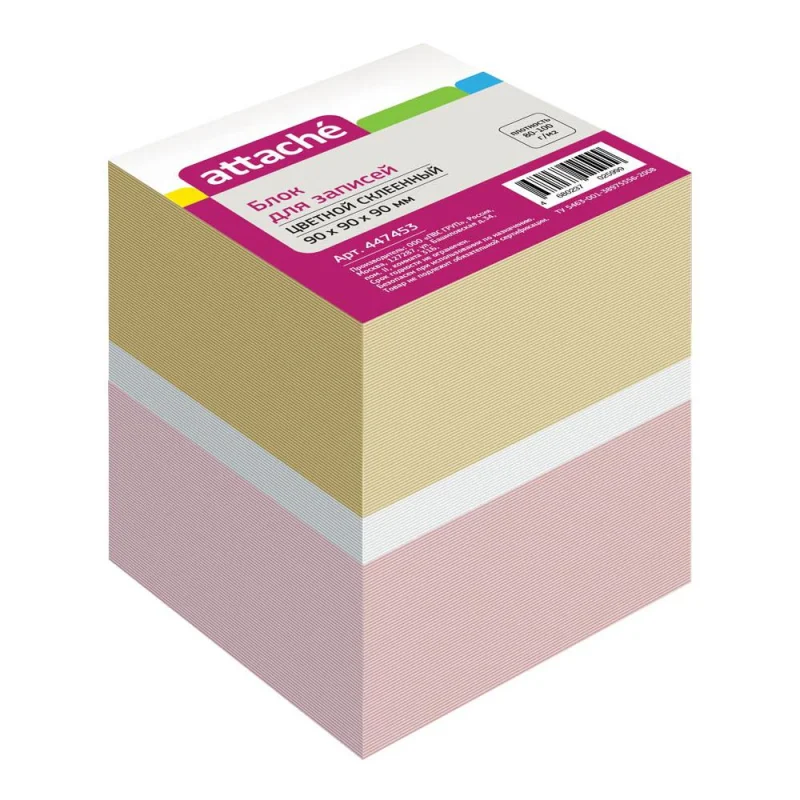 Блок для записей проклеенный Attache 3 цвета, 90х90мм