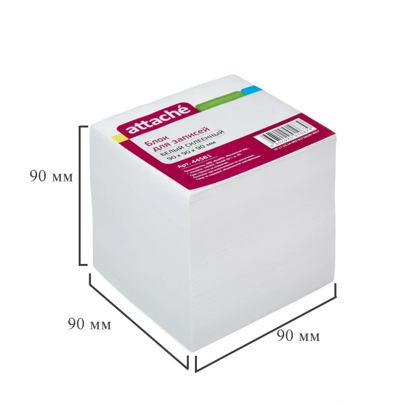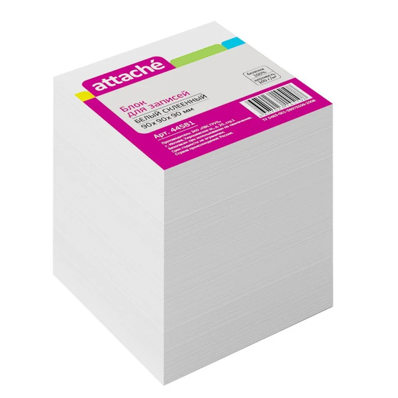 Блок для записей проклеенный Attache белый, 90х90мм, 44581
