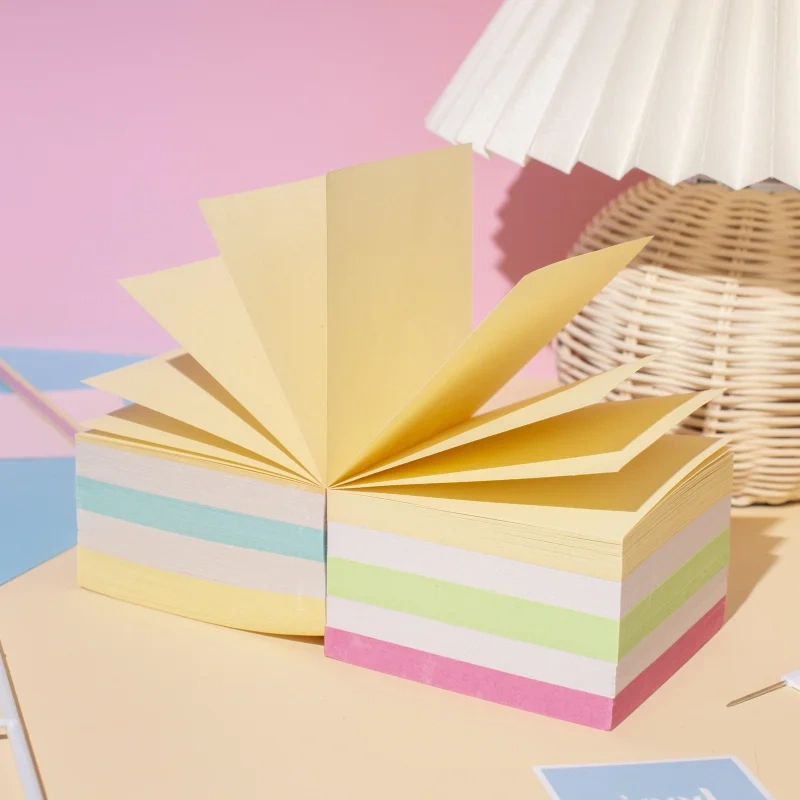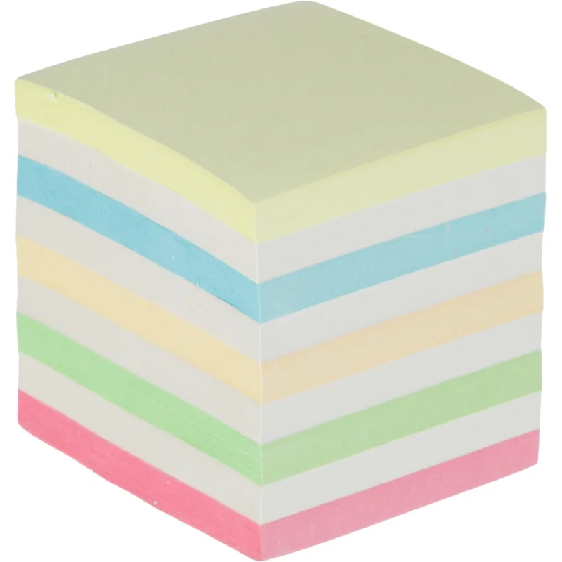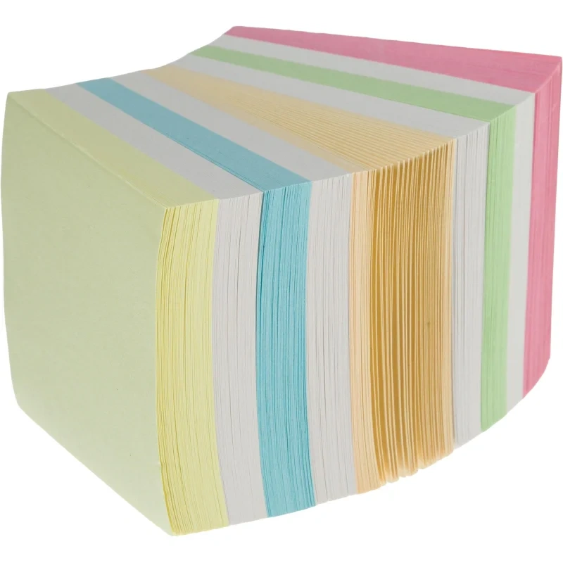 Блок высотой 9 см сложен из квадратных листов размером 9×9 см. Листы склеены между собой. Листы изготовлены из бумаги экономкласса плотностью 65 г/кв.м. Блок для записей подходит для письма ручками и карандашами разных типов. Для повышения удобства рекомендуется использование в пластиковых подставках и настольных органайзерах. Поставляется в термоусадочной пленке, защищающей блок при транспортировке. Блок поставляется в двух вариантах (без возможности выбора): с листами двух цветов и с листами нескольких цветов, а также с этикетками разного дизайна.