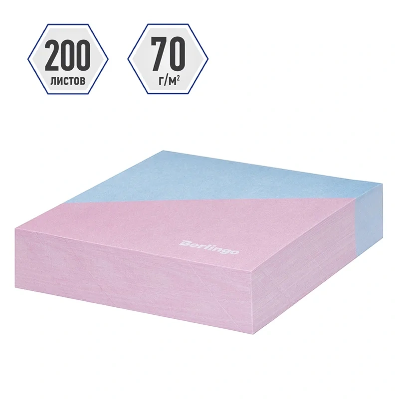 Блок для записей проклеенный Berlingo Haze розовый-голубой, 8.5х8.5х2см, 200 листов