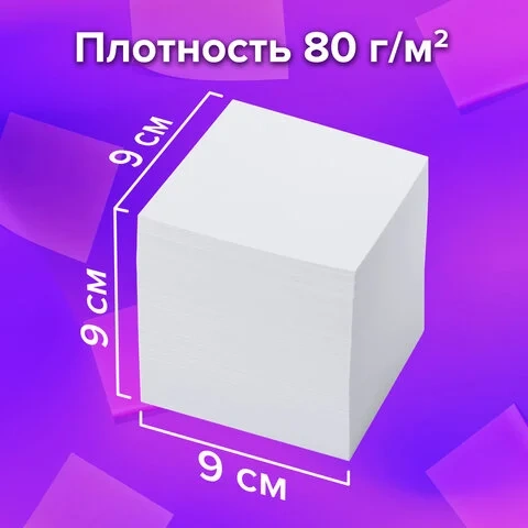 Блок для записей проклеенный Brauberg 9х9х9см, белый, белизна 95-98%