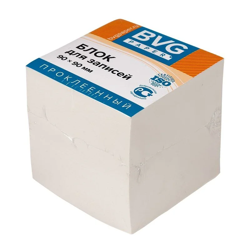 Блок для записей проклеенный Bvg белый, 90х90х90мм