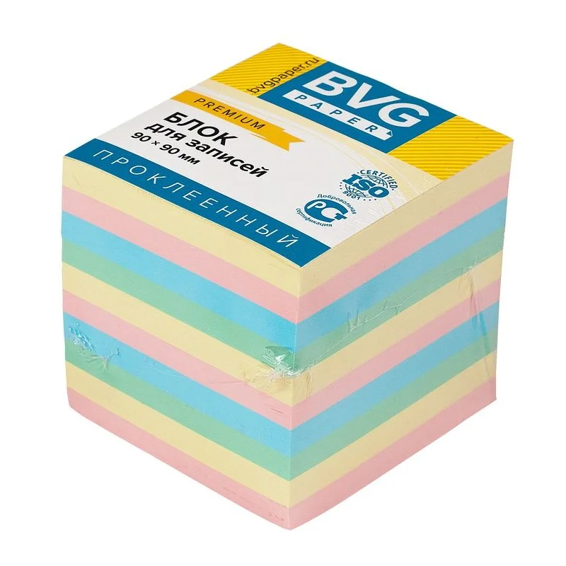 Блок для записей проклеенный Bvg Premium цветной, 90х90х90мм